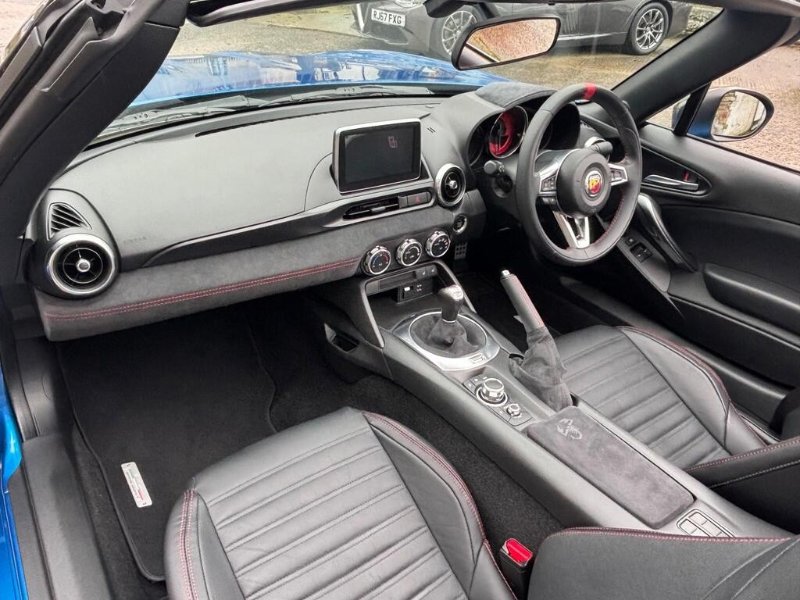 STUNNING LOW MILEAGE ONE OWNER 6 SPEED MANUAL 124 SPIDER 170bhp, VETTURA No : 294, ONLY 25K MILES WITH FULL SERVICE HISTORY, FINISHED IN BEAUTIFUL ISOLA D'ELBA 1974 BLUE WITH BLACK ABARTH EMBOSSED LEATHER TRIM, VISIBILITY PACK WITH AUTO LIGHTS/WIPERS, XENON HEADLIGHTS WITH HEADLIGHT WASH, REAR PARKING SENSORS, 7" TOUCHSCREEN DAB RADIO WITH BOSE SOUND SYSTEM/ MULTIMEDIA CONTROL, FORGIATO GREY COLOUR PACK (FORGIATO GREY MIRROR CAPS & FRONT DAM ), HEATED SEATS, 17" GRAPHITE CORSA DESIGN ALLOY WHEELS WITH RED BREMBO BRAKE CALIPERS, MULTI FUNCTION BLACK SPORTS LEATHER STEERING WHEEL WITH RED STITCHING, CRUISE CONTROL, KEYLESS GO PUSH BUTTON START WITH REMOTE CENTRAL LOCKING, ABARTH RECORD MONZA EXHAUST SYSTEM, Air Conditioning, On Board Computer, Electric Windows, Aluminium Sport Pedals, Drive Mode Selector with Sport Mode, ABS Brakes, Traction Control System, Sports Suspension Abarth by Blistein, Abarth Mechanical Limited Slip Differential, 6 Speed Gearbox with Short and Direct Gear Lever, Front Fog Lights, Full service history, 2 seats, ISOLA D'ELBA 1974 BLUE with BLACK LEATHER, 1 owner, Upgrades - Bose Sound System, Colour Pack - Forgiato Grey, Leather - Black, Visibility Pack, AUTO CAPOZZOLI ILCHESTER, Est Since 1959, Alfa Romeo/Abarth/Fiat Specialists, £18,995