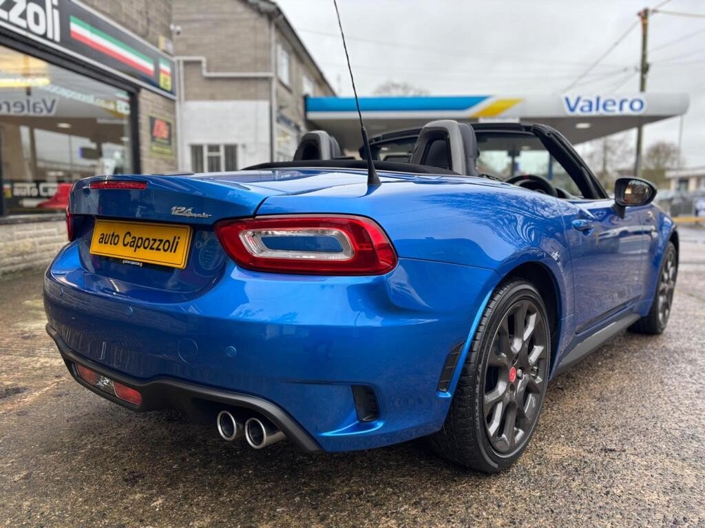 STUNNING LOW MILEAGE ONE OWNER 6 SPEED MANUAL 124 SPIDER 170bhp, VETTURA No : 294, ONLY 25K MILES WITH FULL SERVICE HISTORY, FINISHED IN BEAUTIFUL ISOLA D'ELBA 1974 BLUE WITH BLACK ABARTH EMBOSSED LEATHER TRIM, VISIBILITY PACK WITH AUTO LIGHTS/WIPERS, XENON HEADLIGHTS WITH HEADLIGHT WASH, REAR PARKING SENSORS, 7" TOUCHSCREEN DAB RADIO WITH BOSE SOUND SYSTEM/ MULTIMEDIA CONTROL, FORGIATO GREY COLOUR PACK (FORGIATO GREY MIRROR CAPS & FRONT DAM ), HEATED SEATS, 17" GRAPHITE CORSA DESIGN ALLOY WHEELS WITH RED BREMBO BRAKE CALIPERS, MULTI FUNCTION BLACK SPORTS LEATHER STEERING WHEEL WITH RED STITCHING, CRUISE CONTROL, KEYLESS GO PUSH BUTTON START WITH REMOTE CENTRAL LOCKING, ABARTH RECORD MONZA EXHAUST SYSTEM, Air Conditioning, On Board Computer, Electric Windows, Aluminium Sport Pedals, Drive Mode Selector with Sport Mode, ABS Brakes, Traction Control System, Sports Suspension Abarth by Blistein, Abarth Mechanical Limited Slip Differential, 6 Speed Gearbox with Short and Direct Gear Lever, Front Fog Lights, Full service history, 2 seats, ISOLA D'ELBA 1974 BLUE with BLACK LEATHER, 1 owner, Upgrades - Bose Sound System, Colour Pack - Forgiato Grey, Leather - Black, Visibility Pack, AUTO CAPOZZOLI ILCHESTER, Est Since 1959, Alfa Romeo/Abarth/Fiat Specialists, £18,995