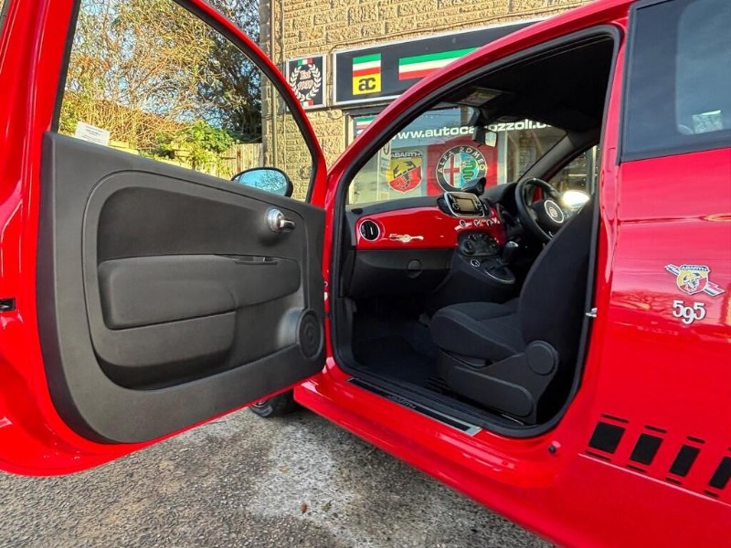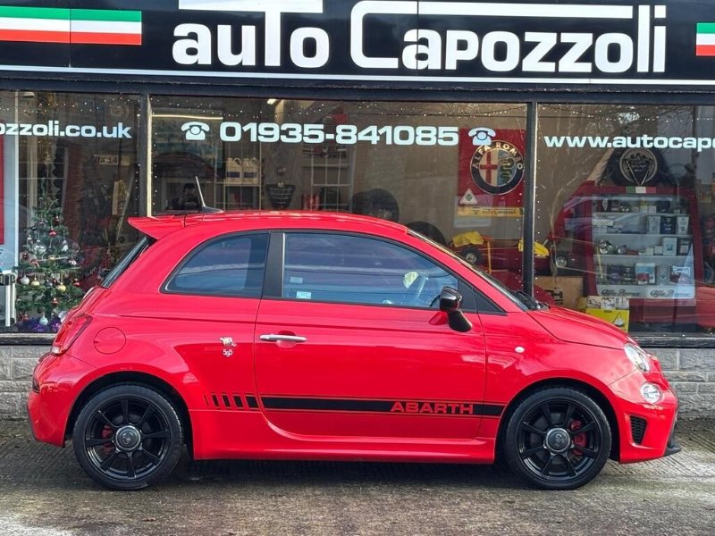 GREAT LOOKING TWO FORMER KEEPER 595 1.4 T-JET 70th ANNIVERSARY 145bhp WITH ONLY 13K MILES, (SOLD BY US FROM NEARLY NEW AND SERVICED BY US FROM NEW), FULL ABARTH SPECIALISTS SERVICE HISTORY WITH CAMBELT/WATER PUMP CHANGED @ 13K MILES IN OCT 2025, FINISHED IN ABARTH RED WITH ABARTH SCORPIONE BLACK COLOUR PACK (ABARTH BLACK SIDE STRIPES/MIRROR CAPS/FRONT AND REAR DAMS), 16" BLACK 8 SPOKE ALLOY WHEELS WITH RED BRAKE CALIPERS, 5" UCONNECT DAB RADIO WITH BLUETOOTH, MULTI FUNCTION BLACK LEATHER FLAT BOTTOMED STEERING WHEEL, AIR CONDITIONING, 50/50 SPLIT REAR SEATS WITH REAR HEADRESTS, Electric Windows, Electric Door Mirrors, On Board Computer, Remote Central Locking, Front Fog Lights, Electronic Stability Control-ASR-Hill Holder, Front Suspension with Frequency Selective Damping technology, TTC - Torque Transfer Control, TPMS - Tyre Pressure Monitoring System, Twin Exhausts with Satin Steel Tailpipes, Spacer Saver Spare Wheel with Tool Kit, Full service history, 4 seats, ABARTH RED with BLACK ABARTH SPORT TRIM, 3 owners, Upgrades - 16in Alloy Wheels - 5-Spoke - Retro, Abarth Side Stripe and Door Mirrors - Gloss Finish - Black, Cloth - Black, Red Brake Calipers, Spacer Saver Spare Wheel with Tool Kit, AUTO CAPOZZOLI ILCHESTER, Est Since 1959, Alfa Romeo/Abarth/Fiat Specialists, £10,495