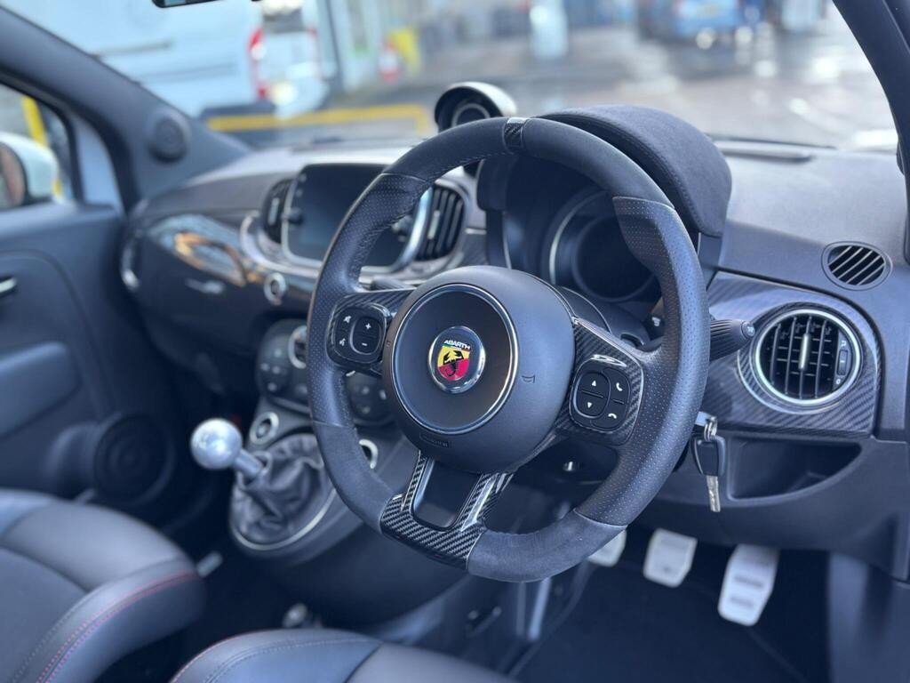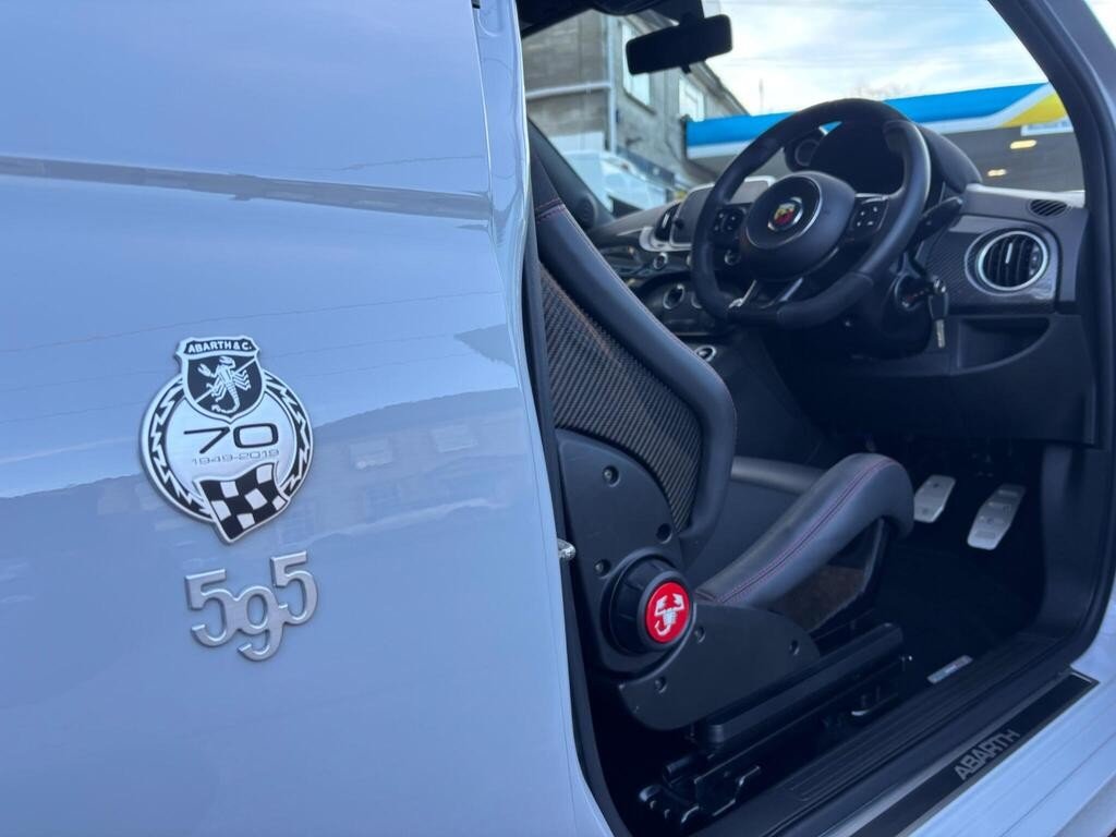 STUNNING LOW MILEAGE CAMPOVOLO GREY 595 ESSEESSE 70th 180bhp, ONLY 16K MILES WITH FULL SERVICE HISTORY, (CAMBELT/WATER PUMP CHANGED @ 13K MILES IN MAY 2025), GORGEOUS EssEsse FINISHED IN BEAUTIFUL CAMPOVOLO GREY WITH ABARTH WHITE COLOUR PACK (WHITE ABARTH SIDE STRIPES/MIRROR CAPS/FRONT AND REAR DAMS), HALF BLACK/RED STITCHING LEATHER SABELT CORSA SEATS WITH CARBON FIBRE SHELL, 7" TOUCHSCREEN DAB RADIO/SATELLITE NAVIGATION WITH APPLE CARPLAY, ALCANTARA, CARBON FIBRE DASHBOARD WITH ALCANTARA BINNACLE COVER, ALLOY GEAR KNOB, 17" WHITE SUPERSPORT ALLOY WHEELS WITH RED BREMBO BRAKE CALIPERS, SCORPIONE ANTENNA ROOF PLUG, MULTI FUNCTION BLACK LEATHER FLAT BOTTOMED STEERING WHEEL WITH CARBON FIBRE DETAILING, ALUMINIUM SPORT PEDALS WITH ABARTH ALUMINIUM KICK PLATES, Digital Climate Control, Tinted Rear Windows, 70th Anniversary Side Badges, On Board Computer, Remote Central Locking, Sport Mode Button, 50/50 Split Rear Seats with Rear Headrests, AKRAPOVIC EXHAUST SYSTEM, ABARTH MECHANICAL LIMITED SLIP DIFFERENTIAL, Koni Front and Rear Shock Absorbers, Electronic Stability Control-ASR-Hill Holder, BMC High Performance Air Filter, Rear Parking Sensors, Front Fog Lights, Full service history, 4 seats, Campovolo Grey, Upgrades - Carbon Fibre Finished Dashboard, Abarth Side Stripes and Mirrors - Gloss Finish - White, Sabelt Racing Carbon - Black with Red Stitching, AUTO CAPOZZOLI ILCHESTER, Est Since 1959, Alfa Romeo/Abarth/Fiat Specialists, £16,995