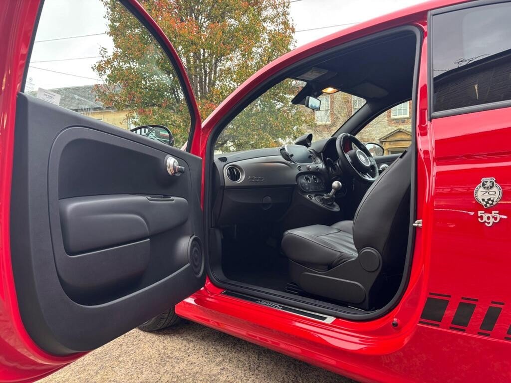 STUNNING TWO OWNER LOW MILEAGE 2020 ABARTH 595 1.4 T-JET TURISMO 70th 165bhp, ONLY 20K MILES WITH FULL ABARTH SERVICE HISTORY, (CAMBELT/WATER PUMP CHANGED @ 20K MILES IN NOV 2025), FINISHED IN BEAUTIFUL ABARTH RED WITH ABARTH SCORPIONE BLACK COLOUR PACK, (BLACK ABARTH SIDE STRIPES/MIRROR COVERS/FRONT AND REAR DAMS), FULL BLACK ABARTH SPORTS LEATHER TRIM, 17" 10 SPOKE DIAMOND FINISH ALLOY WHEELS WITH BLACK BRAKE CALIPERS, 7" TOUCHSCREEN DAB RADIO/SATELLITE NAVIGATION WITH APPLE CARPLAY, AUTO LIGHTS/WIPERS, DIGITAL CLIMATE CONTROL WITH AIR CONDITIONING, MULTI FUNCTION BLACK LEATHER FLAT BOTTOMED STEERING WHEEL, REAR TINTED WINDOWS, ALLOY GEAR KNOB, ALUMINIUM SPORT PEDALS WITH ABARTH ALUMINIUM KICK PLATES, REAR PARKING SENSORS, Electric Windows, Electric Door Mirrors, Remote Central Locking, On Board Computer, 50/50 Split Rear Seats with Rear Headrests, Sport Button, Rear Koni Suspension with FSD Technology - Frequency Selective Damping, TTC - Torque Transfer Control, ABS Brakes, Front Fog Lights, Twin Rear Exhausts Pipes, 4 seats, Red, 2 owners, Upgrades - 17in Alloy Wheels - 10-Spoke Diamond Finish, Abarth Side Stripe and Door Mirrors - Gloss Finish - Black, Black Brake Calipers, Abarth Sports Leather - Black, Auto Lights/Wipers, Colour-Abarth Red, AUTO CAPOZZOLI ILCHESTER, Est Since 1959, Alfa Romeo/Abarth/Fiat Specialists, £12,995