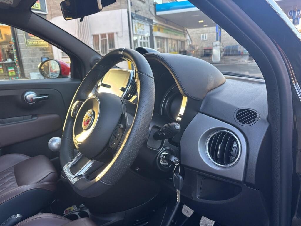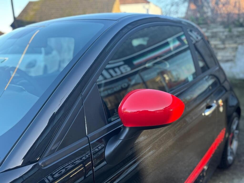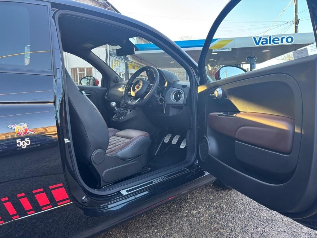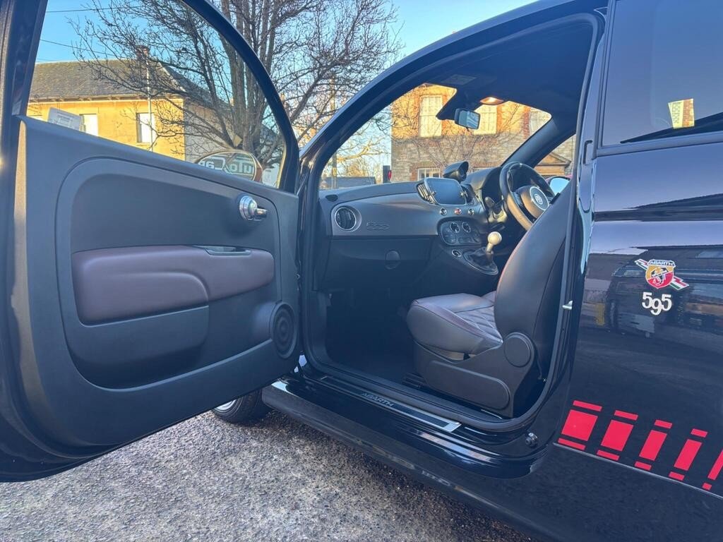 GORGEOUS TWO OWNER SCORPIONE BLACK 595 TURISMO 70th ANNIVERSARY 165bhp WITH ONLY 19K MILES WITH FULL SERVICE HISTORY, FINISHED IN STUNNING SCORPIONE BLACK WITH VERY RARE HERITAGE BROWN DIAMOND LEATHER TRIM, ABARTH CORSA RED COLOUR PACK (RED ABARTH SIDE STRIPES/MIRROR CAPS/FRONT AND REAR DAMS), 17" 5 PETAL ALLOY WHEELS WITH RED BRAKE CALIPERS, 7" TOUCHSCREEN DAB RADIO/SATELLITE NAVIGATION WITH APPLE CARPLAY, URBAN PACK WITH AUTO LIGHTS/WIPERS, DIGITAL CLIMATE CONTROL WITH AIR CONDITIONING, MULTI FUNCTION BLACK LEATHER FLAT BOTTOMED STEERING WHEEL, REAR TINTED WINDOWS, ALLOY GEAR KNOB, ALUMINIUM SPORT PEDALS WITH ABARTH ALUMINIUM KICK PLATES, REAR PARKING SENSORS, Electric Windows, Electric Door Mirrors, Remote Central Locking, On Board Computer, Scorpione Sport Button, Rear Koni Suspension with FSD Technology - Frequency Selective Damping, TTC - Torque Transfer Control, Electronic Stability Control-ASR-Hill Holder, ABS Brakes, Front Fog Lights, Full service history, 4 seats, SCORPIONE BLACK with BROWN HERITAGE LEATHER, 2 owners, Upgrades - Rare Heritage Brown Diamond Leather, Urban Pack with Auto Lights/Wipers, Colour-Scorpione Black, 17" 5 Petal Alloy Wheels, Abarth Side Stripe and Door Mirrors - Gloss Finish - Red, Red Brake Calipers, Abarth Corsa Red Colour Pack, AUTO CAPOZZOLI ILCHESTER, Est Since 1959, Alfa Romeo/Abarth/Fiat Specialists, £13,995