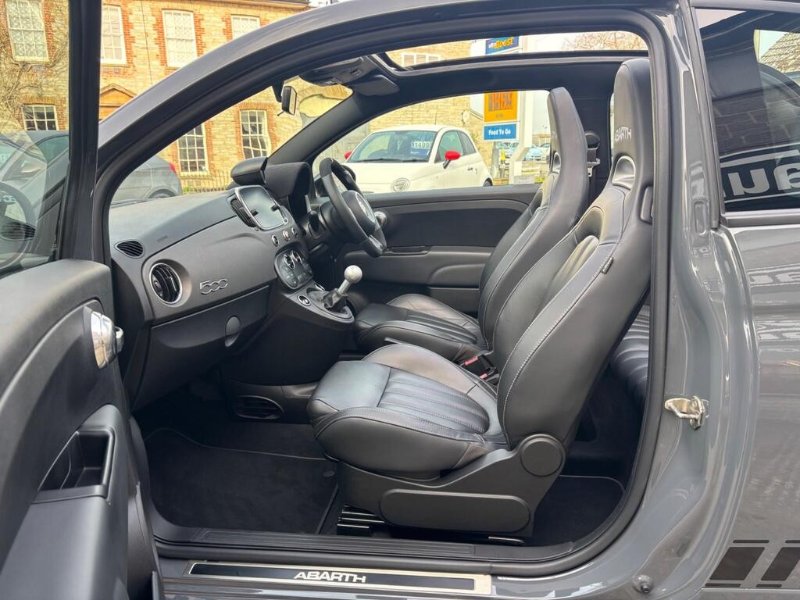 GREAT SPEC 2019 ABARTH 595C 1.4 T-JET COMPETIZIONE 70th ANNIVERSARY CABRIO, 34K MILES WITH FULL ABARTH SERVICE HISTORY, FINISHED IN GORGEOUS CIRCUIT GREY WITH BLACK ABARTH LEATHER TRIM, SCORPIONE BLACK COLOUR PACK (BLACK ABARTH SIDE STRIPES/MIRROR CAPS/FRONT AND REAR DAMS), 17" MATT BLACK SUPERSPORT ALLOY WHEELS WITH BLACK BREMBO BRAKE CALIPERS, XENON HEADLIGHTS WITH HEADLIGHT WASH, 7" UCONNECT TOUCHSCREEN DAB RADIO/SATELLITE NAVIGATION WITH APPLE CARPLAY, REAR PARKING SENSORS, MULTI FUNCTION BLACK LEATHER/ALCANTARA FLAT BOTTOMED STEERING WHEEL WITH CARBON FIBRE DETAILING, ALLOY GEAR KNOB, ALUMINIUM SPORT PEDALS WITH ABARTH ALUMINIUM KICK PLATES, 50/50 SPLIT REAR SEATS WITH REAR HEADRESTS, TINTED REAR WINDOWS, DIGITAL CLIMATE CONTROL WITH AIR CONDITIONING, FULLY ELECTRIC BLACK SOFT TOP ROOF WITH HEATED REAR WINDOW, Electric Windows, Electric Door Mirrors, On Board Computer, Remote Central Locking, Alcantara Wrapped Binnacle Cover, Dashboard and Exterior Details in Anthracite Grey Finishing, 70th Anniversary Side Badges, Matt Black Rear Spoiler, Dual Mode Record Monza Exhaust System with Four Tailpipes, Electronic Stability Control-ASR-Hill Holder, Koni Front and Rear Shock Absorbers, BMC High Performance Air Filter, Front Fog Lights, 4 seats, CIRCUIT GREY with BLACK LEATHER, 4 owners, Upgrades - Bi-Xenon Headlights, 17in Alloy Wheels - Supersport Matt Black, Pack Brembo Black, Abarth Side Stripe and Door Mirrors - Gloss Finish - Black, Black Brembo Brake Calipers, Abarth Sports Leather - Black, Colour-Circuit Grey, 70th Anniversary Side Badges, AUTO CAPOZZOLI ILCHESTER, Est Since 1959, Alfa Romeo/Abarth/Fiat Specialists, £14,995