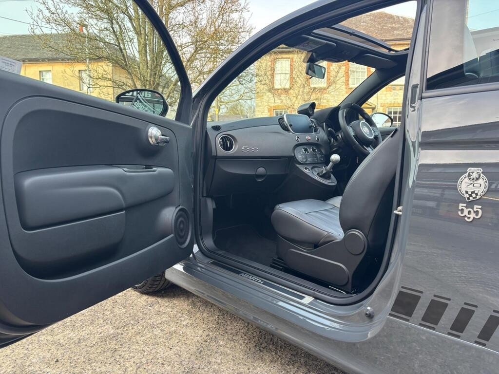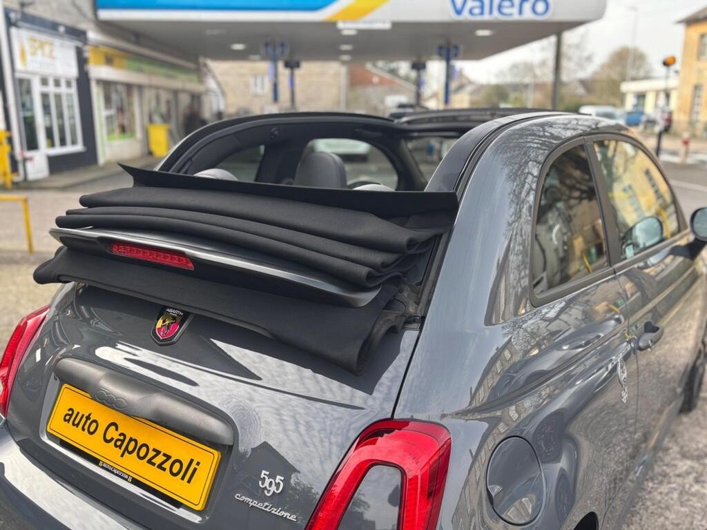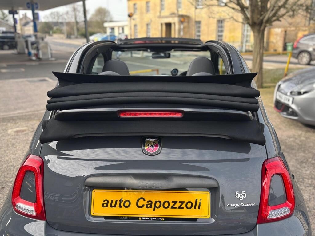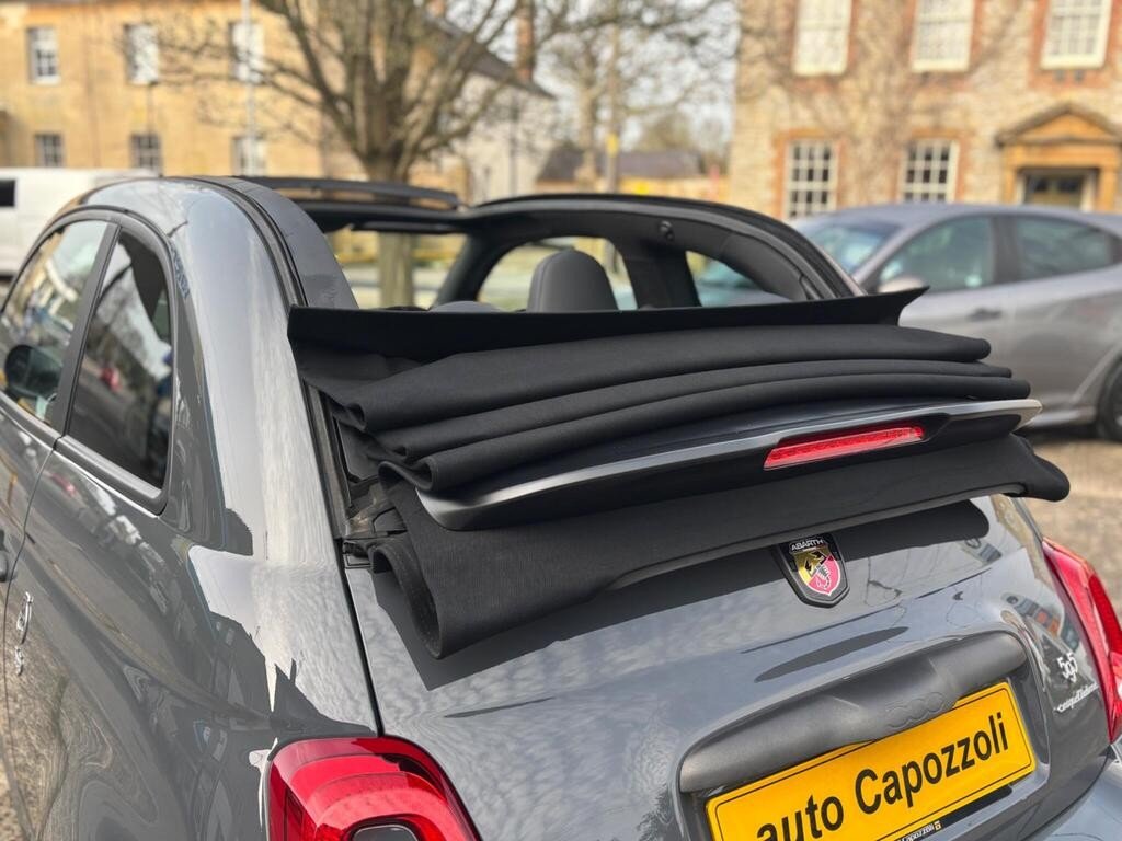 GREAT SPEC 2019 ABARTH 595C 1.4 T-JET COMPETIZIONE 70th ANNIVERSARY CABRIO, 34K MILES WITH FULL ABARTH SERVICE HISTORY, FINISHED IN GORGEOUS CIRCUIT GREY WITH BLACK ABARTH LEATHER TRIM, SCORPIONE BLACK COLOUR PACK (BLACK ABARTH SIDE STRIPES/MIRROR CAPS/FRONT AND REAR DAMS), 17" MATT BLACK SUPERSPORT ALLOY WHEELS WITH BLACK BREMBO BRAKE CALIPERS, XENON HEADLIGHTS WITH HEADLIGHT WASH, 7" UCONNECT TOUCHSCREEN DAB RADIO/SATELLITE NAVIGATION WITH APPLE CARPLAY, REAR PARKING SENSORS, MULTI FUNCTION BLACK LEATHER/ALCANTARA FLAT BOTTOMED STEERING WHEEL WITH CARBON FIBRE DETAILING, ALLOY GEAR KNOB, ALUMINIUM SPORT PEDALS WITH ABARTH ALUMINIUM KICK PLATES, 50/50 SPLIT REAR SEATS WITH REAR HEADRESTS, TINTED REAR WINDOWS, DIGITAL CLIMATE CONTROL WITH AIR CONDITIONING, FULLY ELECTRIC BLACK SOFT TOP ROOF WITH HEATED REAR WINDOW, Electric Windows, Electric Door Mirrors, On Board Computer, Remote Central Locking, Alcantara Wrapped Binnacle Cover, Dashboard and Exterior Details in Anthracite Grey Finishing, 70th Anniversary Side Badges, Matt Black Rear Spoiler, Dual Mode Record Monza Exhaust System with Four Tailpipes, Electronic Stability Control-ASR-Hill Holder, Koni Front and Rear Shock Absorbers, BMC High Performance Air Filter, Front Fog Lights, 4 seats, CIRCUIT GREY with BLACK LEATHER, 4 owners, Upgrades - Bi-Xenon Headlights, 17in Alloy Wheels - Supersport Matt Black, Pack Brembo Black, Abarth Side Stripe and Door Mirrors - Gloss Finish - Black, Black Brembo Brake Calipers, Abarth Sports Leather - Black, Colour-Circuit Grey, 70th Anniversary Side Badges, AUTO CAPOZZOLI ILCHESTER, Est Since 1959, Alfa Romeo/Abarth/Fiat Specialists, £14,995