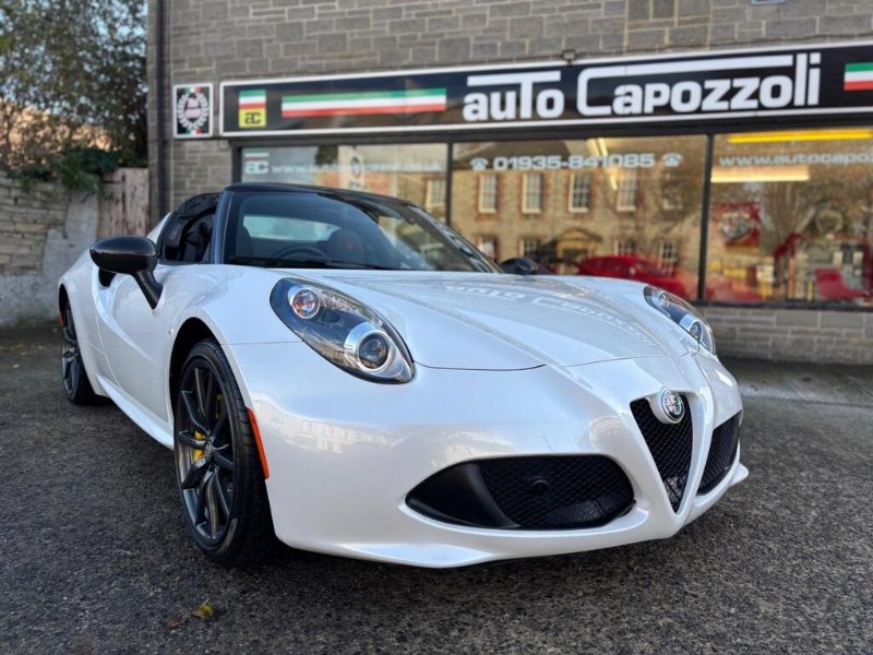 " Coming Soon " LIKE BRAND NEW A TRUE COLLECTORS STUNNING SUPER LOW MILEAGE 2019 ALFA ROMEO 4C 1750 TBi SPIDER, ONLY 1K MILES WITH FULL ALFA ROMEO/SPECIALISTS SERVICE HISTORY, CAMBELT/WATER PUMP CHANGED @ 988 MILES IN MAY 2025, GREAT SPEC WITH OVER £8K OPTIONAL EXTRAS, FINISHED IN GORGEOUS TRI -COAT MADREPERLA WHITE WITH HALF BLACK/RED STITCHING LEATHER TRIM, ANTI-STONE CHIPPING PROTECTION FILM FROM NEW, 18" FRONT WITH 19" REAR DARKENED MULTI SPOKE ALLOY WHEELS, YELLOW BREMBO BRAKE CALIPERS, RACING DOUBLE EXHAUST TAILPIPE, CARBON FIBRE MIRROR CAPS, CARBON FIBRE LATERAL AIR INTAKE, CARBON FIBRE ROLL BAR COVER, CARBON FIBRE REAR SPOILER, CARBON FIBRE FRONT WINDSCREEN SURROUND, REAR PARKING SENSORS, CRUISE CONTROL, BLACK LEATHER DASH WITH RED STITCHING, Alpine Radio with Voice Recognition and Bluetooth Hands-Free with Alfa Hi-Fi Sound System, Advanced Alfa D.N.A Driving Mode Selector, Flat Bottomed Black Leather Sport Steering Wheel with Paddle Shift Gear Change, Manual Air Conditioning, Electric Windows, Electric Door Mirrors, Remote Central Locking, Aluminium Sport Pedals, Original 4C Carpet Matts, Bi-Xenon Headlights, TPMS - Tyre Pressure Monitoring System, VDC - Vehicle Dynamic Control, Full service history, 2 seats, MADREPERLA WHITE HALF BLACK/RED STITCHING LEATHER, 4 owners, Upgrades - Cruise Control, Parking Sensors - Rear, 18in Front 19 in Rear Alloy Wheels - Multi-Spoke, Door Mirrors - Carbon Fibre, Exhaust Tailpipe - Racing Double, Leather - Microfibre - Black with Red Stitching, Lateral Air Intake in Carbon Fibre, Anti Stone Chipping Protective Film, Headlights - Bi-LED, Colour-Three Layer Madreperla White, 18in Front 19 in Rear Alloy Wheels - Multi-Spoke with Dark Finish, Dashboard - Leather - Black with Red Stitching, Brake Calipers - Yellow, Carbon Fibre Roll Bar Cover, Original 4C Red Car Cover, Original Bag For Soft Top, AUTO CAPOZZOLI ILCHESTER, Est Since 1959, Alfa Romeo/Abarth/Fiat Specialists, £59,995