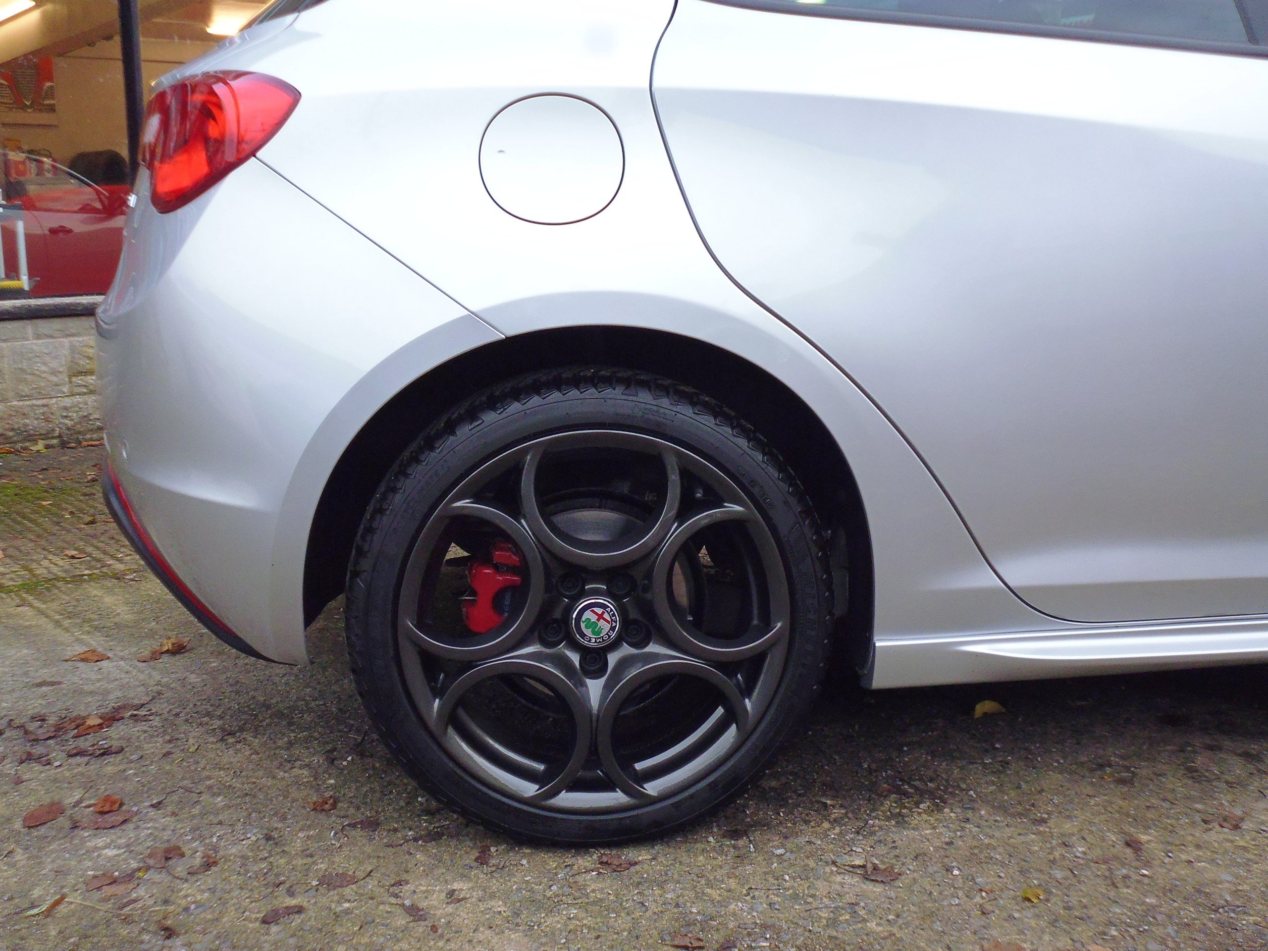 - Red brembo brake calipers