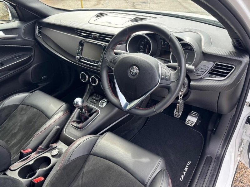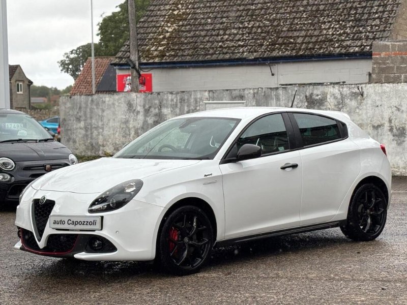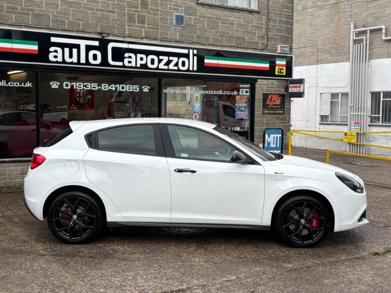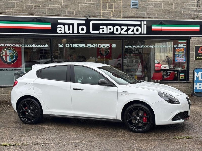 STUNNING ONE OWNER LOW MILEAGE GREAT SPEC LIMITED EDITION GIULIETTA 1.4 TB SPRINT 120bhp, ONLY 26K MILES WITH FULL ALFA ROMEO SPECIALISTS SERVICE HISTORY, (CAMBELT/WATER PUMP CHANGED @ 26K MILES IN SEPT 2025), FINISHED IN GORGEOUS ALFA WHITE WITH HALF BLACK LEATHER/ALCANTARA SPORT SEATS WITH RED STITCHING AND ALFA ROMEO EMBOSSED, GREAT SPEC SPRINT WITH 18" DARK MIRON ALLOY WHEELS/MONOCHROME WHEEL CENTRES WITH RED BREMBO BRAKE CALIPERS, CARBON FIBRE PACK WITH CARBON FIBRE MIRROR CAPS/SIDE SKIRTS AND FRONT GRILLE SURROUND, REAR PRIVACY GLASS, FRONT AND REAR PARKING SENSORS, 6.5" UCONNECT TOUCHSCREEN DAB RADIO/SATELLITE NAVIGATION WITH Hi-Fi BOSE SOUND SYSTEM, DARKENED SPRINT BADGES, Digital Climate Control, 4 Electric Windows, Electric Door Mirrors, On Board Computer, Remote Central Locking, Cruise Control, Alfa Romeo D.N.A System, Multi Function Black Leather Flat Bottomed Steering Wheel with Red Stitching, Dark Miron Door Handles, Aluminium Sport Pedals, 60/40 Split Rear Seats with Rear Headrests and Rear Armrest with Storage, Carbon Look Dashboard Contorn and Door Panels, Electronic Q2 Differential, VDC - Vehicle Dynamic Control - ABS-ASR-Brake Assistant with Hill Holder, Front Fog Lights, Carbon Effect Headlights, Enlarged Exhaust Pipe, Sports Front Splitter and Rear Dam with Red Moulding, 5 seats, ALFA WHITE with HALF BLACK LEATHER/ALCANTARA TRIM, 1 owner, Upgrades - 18in Alloy Wheels - Dark Miron, Fabric and Alcantara Sports Seats - Black with Red Stitching, Colour-Alfa White, Carbon Fibre Pack, AUTO CAPOZZOLI ILCHESTER, Est Since 1959, Alfa Romeo/Abarth/Fiat Specialists, £14,995