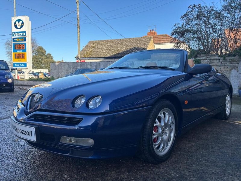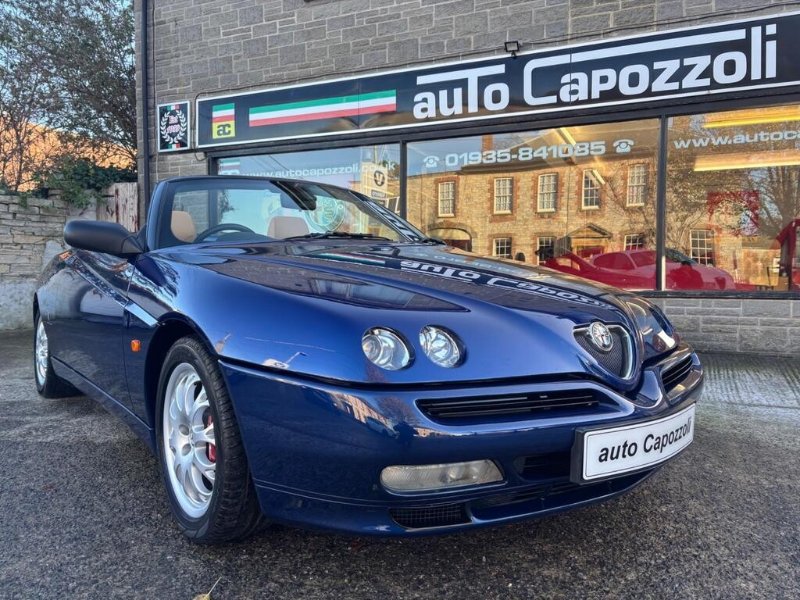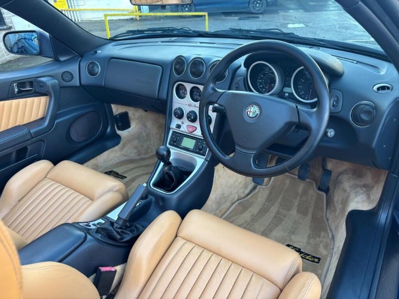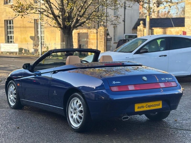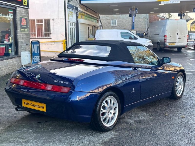 VERY RARE ONE OWNER 2002 SPIDER LUSSO "BUSSO" 3.0 V6 24v WITH ONLY 65K MILES, FULL SERVICE HISTORY WITH CAMBELT/WATER PUMP CHANGED @ 65K MILES IN AUG 2025, FINISHED IN GORGEOUS LIGHTING BLUE METALLIC WITH MOMO NATURAL TAN LEATHER TRIM, ELECTRIC POWER FOLDING BLACK SOFT TOP, FULL SET OF KEYS WITH MASTER KEY AND TWO META ALARM REMOTES, BLAUPUNLET RADIO/NAVIGATION with CD AUTOCHANGER, Air Conditioning, Electric Windows, Electric Door Mirrors, Remote Central Locking, 3 Spoke Black Leather Steering Wheel, Electric Antenna, 16" Alloy Wheels with Red Bembo Brake Calipers, ABS Brakes, Traction Control System, Front Fog Lights, 6 Speed Gearbox, Full service history, 2 seats, LIGHTING BLUE METALLIC with NATURAL LEATHER, 1 owner, Upgrades - CD Autochanger (Including Navigator), Navigator, Metallic Paint, Puncture Repair Kit (in lieu of spare wheel), Meta Security Alarm Immobiliser, Colour-Lighting Blue Metallic, Blaupunkt Radio/Navigation, Momo Natural Tan Leather, AUTO CAPOZZOLI ILCHESTER, Est Since 1959, Alfa Romeo/Abarth/Fiat Specialists, £10,995