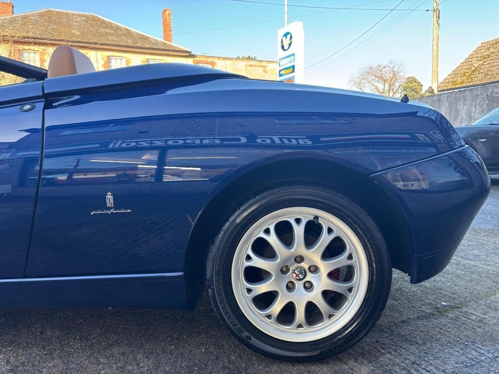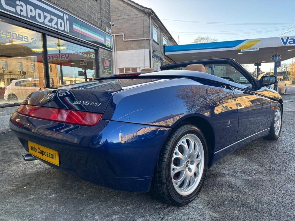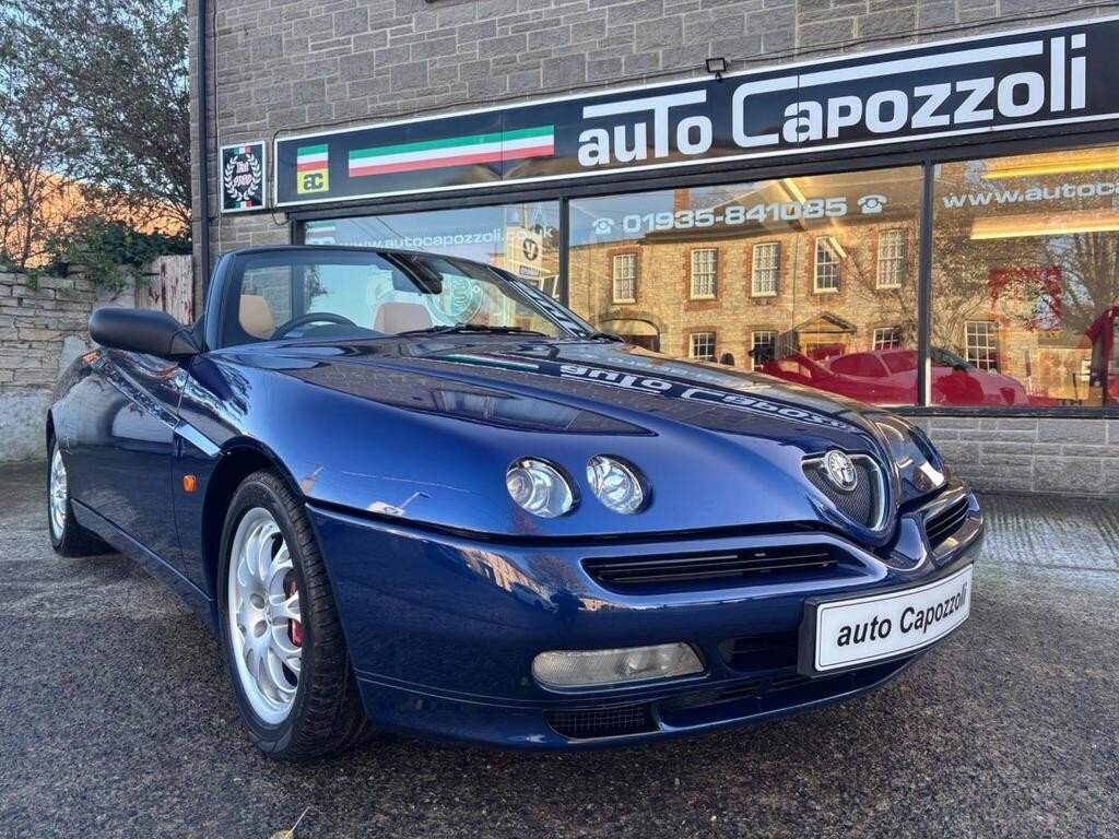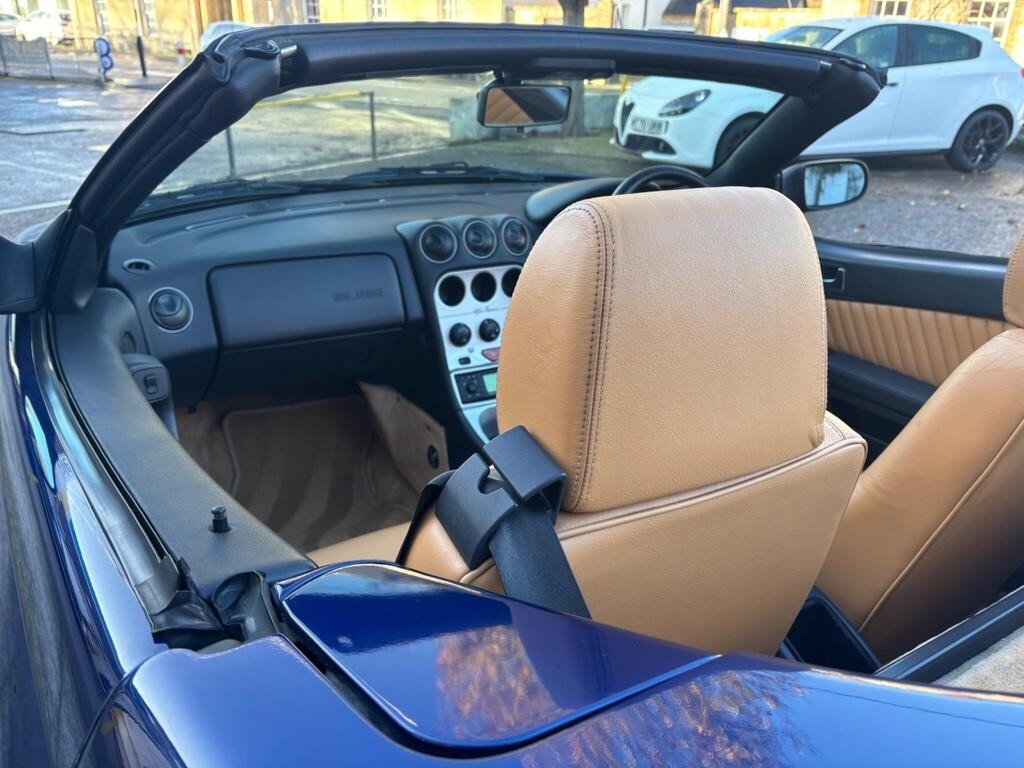 VERY RARE ONE OWNER 2002 SPIDER LUSSO "BUSSO" 3.0 V6 24v WITH ONLY 65K MILES, FULL SERVICE HISTORY WITH CAMBELT/WATER PUMP CHANGED @ 65K MILES IN AUG 2025, FINISHED IN GORGEOUS LIGHTING BLUE METALLIC WITH MOMO NATURAL TAN LEATHER TRIM, ELECTRIC POWER FOLDING BLACK SOFT TOP, FULL SET OF KEYS WITH MASTER KEY AND TWO META ALARM REMOTES, BLAUPUNLET RADIO/NAVIGATION with CD AUTOCHANGER, Air Conditioning, Electric Windows, Electric Door Mirrors, Remote Central Locking, 3 Spoke Black Leather Steering Wheel, Electric Antenna, 16" Alloy Wheels with Red Bembo Brake Calipers, ABS Brakes, Traction Control System, Front Fog Lights, 6 Speed Gearbox, Full service history, 2 seats, LIGHTING BLUE METALLIC with NATURAL LEATHER, 1 owner, Upgrades - CD Autochanger (Including Navigator), Navigator, Metallic Paint, Puncture Repair Kit (in lieu of spare wheel), Meta Security Alarm Immobiliser, Colour-Lighting Blue Metallic, Blaupunkt Radio/Navigation, Momo Natural Tan Leather, AUTO CAPOZZOLI ILCHESTER, Est Since 1959, Alfa Romeo/Abarth/Fiat Specialists, £10,995