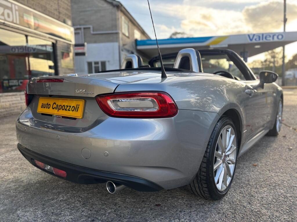 VERY RARE IMMACULATE ONE OWNER FIAT 124 SPIDER 1.4 MULTIAIR LUSSO PLUS 140bhp AUTOMATIC WITH ONLY 5K MILES WITH SERVICE HISTORY, GORGEOUS ONE OWNER LOW MILEAGE RARE 124 SPIDER 1.4 MULTIAIR LUSSO PLUS AUTOMATIC, FINISHED IN STUNNING ARGENTO GREY WITH BLACK/SILVER STITCHING LEATHER TRIM, GREAT SPEC SPIDER LUSSO PLUS WITH BOSE AUDIO SYSTEM WITH 9 SPEAKERS, XENON HEADLIGHTS WITH HEADLIGHT WASH, AUTO LIGHTS/WIPERS, REAR PARKING SENSORS WITH REAR PARKING CAMERA, HEATED SEATS, 7" TOUCHSCREEN DAB RADIO WITH SATELLITE NAVIGATION, MULTI MEDIA CONTROL KNOB, MULTI FUNCTION BLACK LEATHER STEERING WHEEL WITH CRUISE CONTROL/SPEED LIMITER, AUTOMATIC CLIMATE CONTROL WITH AIR CONDITIONING, KEYLESS ENTRY WITH KEYLESS START, Electric Windows, Electric Door Mirrors with Colour Coded Mirror Caps, Premium Silver Roll Over Hoops with Premium Silver Windscreen Frame, 17" Multi Spoke Alloy Wheels, ABS Brakes, ESC - Electronic Stability Control, Front Fog Lights, Chrome Double Exhaust Pipes, 2 seats, ARGENTO GREY with BLACK LEATHER, 1 owner, Upgrades - Leather - Black with Silver Stitching, Colour-Argento Grey, One Owner, Rare Automatic, Only 5K Miles, AUTO CAPOZZOLI ILCHESTER, Est Since 1959, Alfa Romeo/Abarth/Fiat Specialists, £17,995