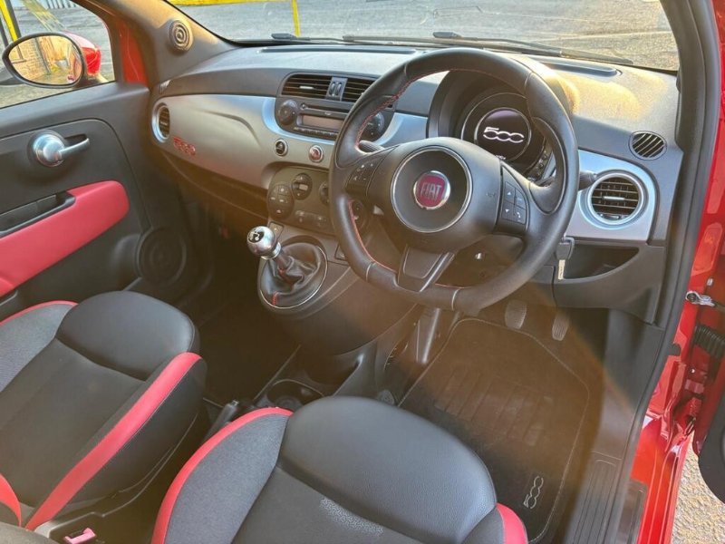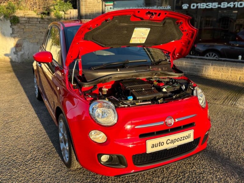 GREAT LOOKING TWO OWNER LOW MILEAGE FIAT 500 1.2 S, ONLY 23K MILES WITH FULL SERVICE HISTORY, (CAMBELT/WATER PUMP CHANGED @23K MILES IN NOV 2025), FINISHED IN PASODOBLE RED WITH TWO TONE BLACK/RED TRIM, 16" ALLOY WHEELS, REAR PARKING SENSORS, FRONT FOG LIGHTS, DIGITAL CLIMATE CONTROL WITH AIR CONDITIONING, MULTI FUNCTION BLACK LEATHER WITH RED STITCHING FLAT BOTTOMED STEERING WHEEL, Radio/CD Player with Blue&Me Voice Control Bluetooth, Electric Windows, Electric Door Mirrors, Remote Central Locking, On Board Computer, Tinted Rear Windows, 50/50 Split Rear Seats with Rear Headrests, Spacer Saver Spare Wheel, ABS Brakes, ESP - Electronic Stability Programme, ASR - Anti-Slip Regulation, Full service history, 4 seats, PASODOBLE RED with TWO TONE BLACK/RED TRIM, 2 owners, Upgrades - Cloth - Black-Red with Black Ambience, 16in Alloy Wheels - 420, Colour-Pasodoble Red, Rear Parking Sensors, Front Fog Lights, Digital Climate Control, Tinted Rear Windows, AUTO CAPOZZOLI ILCHESTER, Est Since 1959, Alfa Romeo/Abarth/Fiat Specialists, £5,995