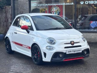 STUNNING 595 COMPETIZIONE 70th 180bhp FINISHED IN GARA WHITE WITH ABARTH CORSA RED COLOUR PACK (RED ABARTH SIDE STRIPES/MIRROR CAPS/FRONT AND REAR DAMS), 41K MILES WITH FULL ABARTH SERVICE HISTORY, BLACK EMBOSSED ABARTH GT SABELT CORSA SEATS WITH … -